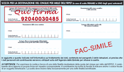 ATTENZIONE: la scelta del 5x1000 non ha alcun costo per te e non esclude la tua scelta per la destinazione dell'8x1000. È invece molto importante per sostenere le nostre attività e progetti di solidarietà. Condividi e consiglia ad un amico di sostenerci!